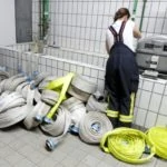 In Anspruch genommenes Schlauchmaterial wird zur Reinigung  in die Schlauchwäsche verbracht, gewaschen und getrocknet. Außerdem erfolgt eine Dichtigkeits- und Zustandüberprüfung und erforderlichenfalls durch die Gerätewarte eine Reparatur oder Aussonderung .