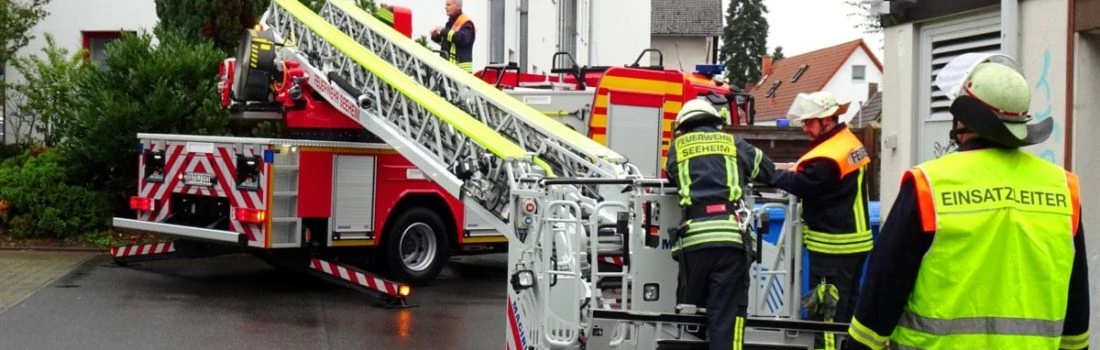 Zur Unterstützung des Rettungsdienstes beim schonenden Transport eines Patienten aus einem Wohngebäude in der Straße „Am Schwimmbad“ wurden die Freiwilligen Feuerwehren Seeheim und Jugenheim am Sonntag (06. Oktober) gegen 16 Uhr alarmiert. Die Beförderung erfolgte aus dem ersten Obergeschoss mittels der im Korb der Drehleiter installierten Krankentragenlagerung. Die beengten räumlichen Verhältnisse in diesem Bereich erforderten einiges fahrerisches Geschick bei der Positionierung des Leiterfahrzeugs sowie des Bedienpersonals beim Anleitern an das Gebäude.