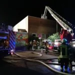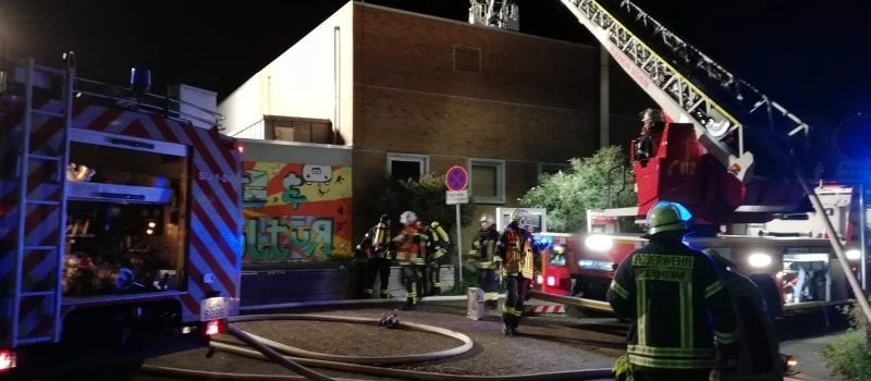 Insgesamt konnte durch sechs eingesetzte Trupps unter Atemschutz die Menschenrettung recht zügig vorgenommen sowie der Brand im Kellerbereich abgelöscht werden. Ergänzend musste der Hauptflur- und Treppenraum rauchfrei gehalten werden, um die Teilnehmer einer dort stattfindende Chorprobe nicht zu gefährden. Nach der Brandbekämpfung galt es zudem durch Hochleistungslüfter auch die Kellerräumlichkeiten rauchfrei zu machen. Ebenso konnte die im Bereich des Daches der Halle verunfallte Person unter Einsatz der Drehleiter gerettet werden.