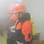 Der erste Einsatz galt der Bekämpfung eines Brandes im Spielraum des Evangelischen Kindergartens im „Weedring“. In das Übungsszenario waren sowohl die Brandbekämpfung mit zwei Rohren als auch die gleichzeitige Suche nach zwei vermissten Kindern und deren Rettung eingebaut. Erschwert wurde die Suche durch eine künstliche Verrauchung, so dass Trupps mit „Atemschutzgeräten“ vorgehen mussten.  Zudem mussten sich die Suchtrupps ausschließlich mit Handleuchten in dem verdunkelten Raum zurechtfinden und vorarbeiten. Bereits nach kurzer  Zeit waren die vermissten „Personen“ in Form von  „Dummies“ gefunden und gerettet.