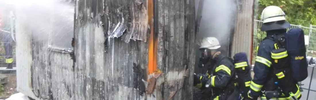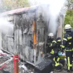 Völlige ausgebrannt ist am frühen Abend des Freitag (15. September) aus bisher ungeklärter Ursache ein neben einem Rohbau in der oberen Frankensteiner Straße in Malchen abgestellter Bauwagen. Die um 19.15 Uhr alarmierte Freiwillige Feuerwehr Seeheim brachte das Feuer nach kurzer Zeit unter Kontrolle. Die Brandbekämpfung musste wegen der starken Rauchentwicklung unter Atemschutz vorgenommen werden. Ein neben dem Bauwagen stehendes Toilettenhäuschen aus Kunststoff wurde durch die Hitzestrahlung in Mitleidenschaft gezogen. Im Zuge der Nachlöscharbeiten kam auch eine Wärmebildkamera zum Aufspüren eventuell noch vorhandener Brandnester zum Einsatz. Nach gut einer Stunde konnte der Einsatz beendet werden. Insgesamt waren 11 Einsatzkräfte mit drei Farzeugen an den Löscharbeiten beteiligt. Weitere ausgerückte Fahrzeuge brauchten nicht mehr eingesetzt zu werden. Verletzt wurde niemand.