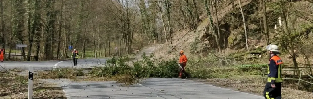 Zur Beseitigung eines auf die Fahrbahn des Ober-Beerbacher Tales in Höhe der Einmündung des „Lufthansarings“ gestürzten Baumes wurde die Feuerwehr am Dienstag (3. April) um 12.51 Uhr alarmiert.