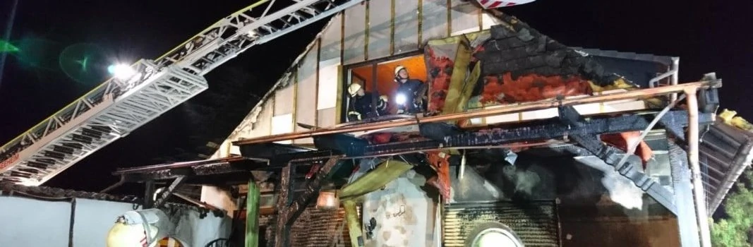 Nur drei Tage später, am Sonntag (19. April), wurde die Feuerwehr Seeheim um 0.35 Uhr mit Drehleiter und Großtanklöschfahrzeug erneut nach Bickenbach beordert. Einsatzobjekt war diesmal ein Wohnhaus, ebenfalls in der Pfungstädter Straße, wo zunächst der Bereich einer Pergola in Brand geraten war und die Flammen sodann auf die Hausfassade und einen Teil des Daches des Wohnhauses übergegriffen hatten. Die Seeheimer Einsatzkräfte überprüften von der Arbeitsplattform der Drehleiter aus den Brandbereich und dessen Umgebung mit einer Wärmebildkamera auf Glutnester. In diesem Zuge mussten für die begleitenden Löscharbeiten auch Teile der Dachhaut geöffnet und die Fassadenverkleidung entfernt werden. Um kurz vor vier Uhr konnte die Seeheimer Wehr die Einsatzstelle verlassen.
