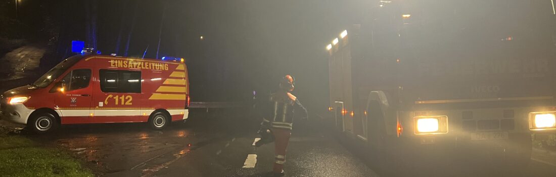 Noch während des laufenden Einsatzes wurde die Feuerwehr Seeheim zu einem weiteren Einsatz auf die K143 alarmiert. Vor Ort lag ein Baum quer über der Fahrbahn. Die Kräfte beseitigten das Verkehrshindernis und konnten nach kurzer Zeit die Straße wieder freigeben und sich im Anschluss dem noch laufenden Einsatz zuwenden.